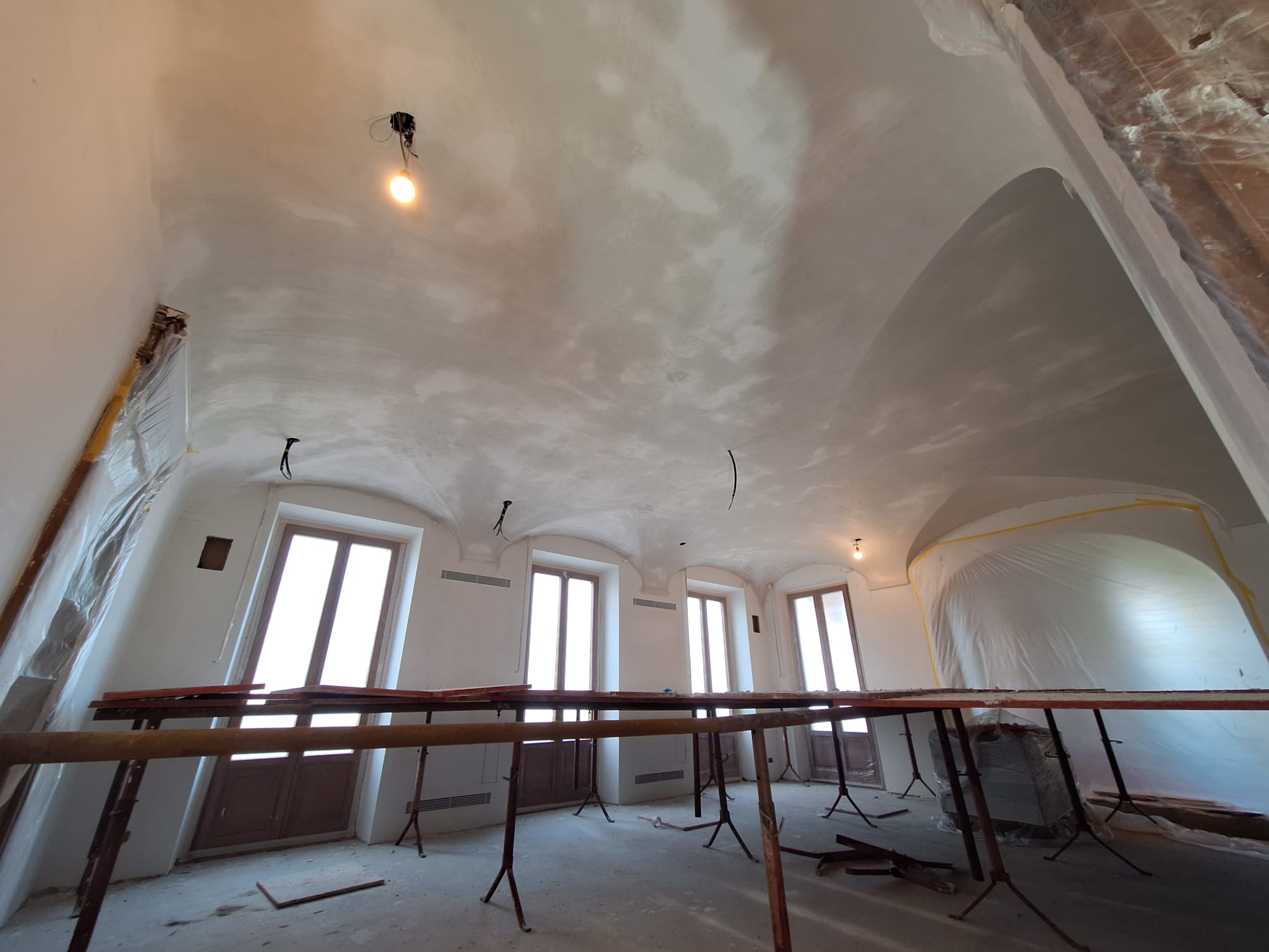 volte, cupole e archi, recuperati e riportati alla loro forma originale attraverso lavorazioni artigianali e tecniche tradizionali di finitura.
